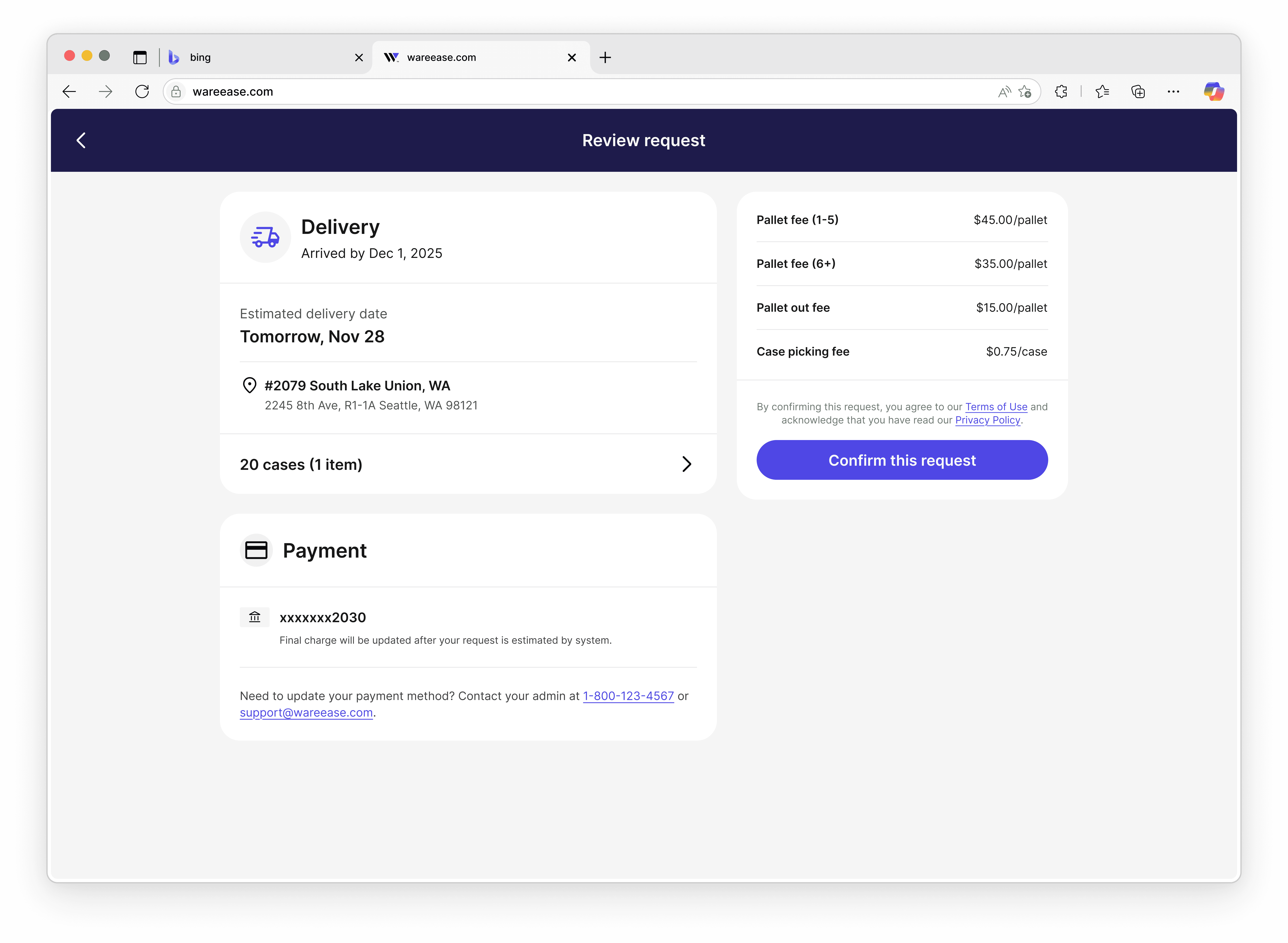 Warehouse portal